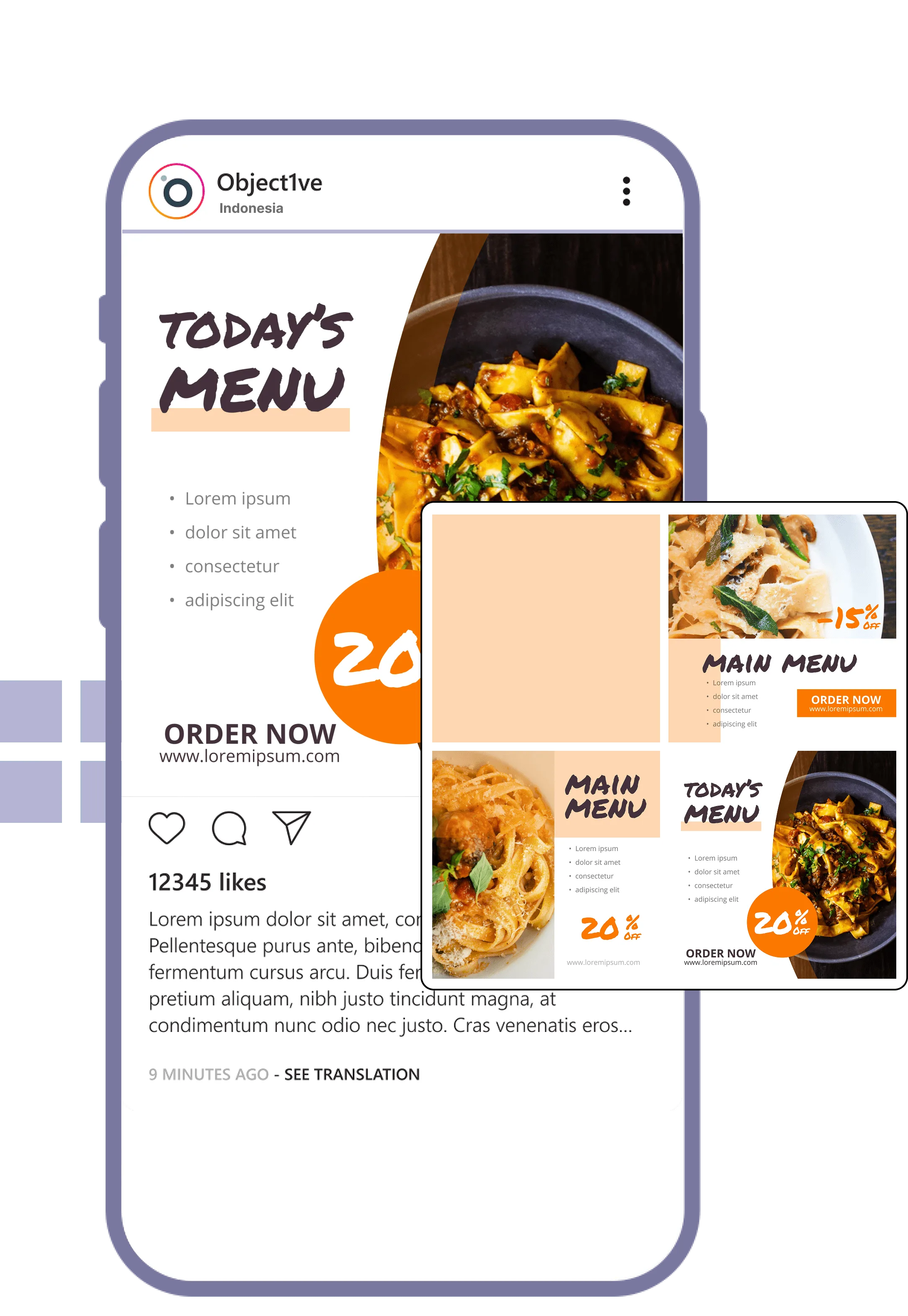 Produk promo, edukasi, testimonial, katalog, quotes & engagement semuanya sudah tersedia siap pakai!